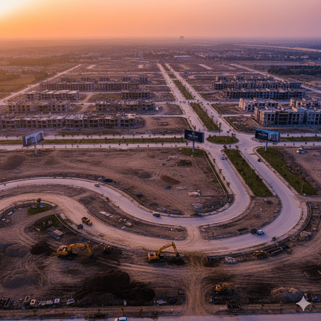 It offers a mix of residential and commercial zones: large plots for homes, and dedicated commercial markaz and business districts.